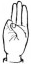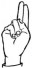 На ћирилици написано МИЛУТИН ТРИКОШАНИН састоји се из 17 слова [?]. Исписано ћириличном једноручном азбуком за глувонеме: